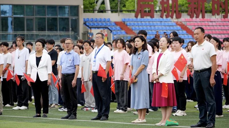 校國旗護衛(wèi)隊邁著鏗鏘堅定的步伐昂首前行,每一步都飽含赤誠;鮮艷的五星紅旗在朝陽映照下,于師生的肅立注目中冉冉升起、迎風展揚。嘹亮國歌回蕩校園,師生目光緊緊追隨著國旗,“青春向黨,強國有我” 的信念,在這莊嚴時刻深深鐫刻心間。