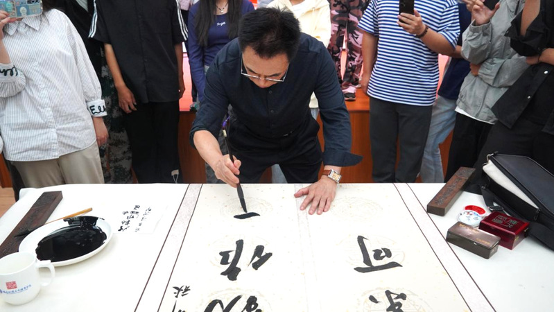 講座中,梁代教授以個人成長與書法結(jié)緣的經(jīng)歷為引,講述他從孜孜求學的學子成長為推動中華優(yōu)秀傳統(tǒng)文化海外傳播“書法文化使者”的奮斗歷程,并結(jié)合經(jīng)典作品與自身創(chuàng)作實踐,細致講解了執(zhí)筆、“用筆”的千古不易之法則,呼吁更多的書法愛好者從自身做起,提升審美,堅守傳統(tǒng),從筆墨中體悟“剛健有為”“虛實相生”的東方智慧。他還鼓勵青年學子錘煉技藝、修煉品格、涵養(yǎng)心靈,樹立遠大理想,在擔當中歷練,在盡責中成長,爭做“有理想、敢擔當、能吃苦、肯奮斗”的新時代青年。