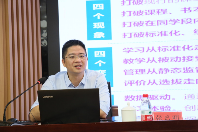 為深入貫徹落實(shí)《教育強(qiáng)國(guó)建設(shè)規(guī)劃綱要(2024—2035年)》及現(xiàn)代職業(yè)教育體系建設(shè)改革精神,進(jìn)一步優(yōu)化我院專業(yè)布局、深化教育教學(xué)改革,近日,學(xué)院特邀寧波職業(yè)技術(shù)大學(xué)雙高辦主任、教務(wù)處處長(zhǎng)、招生辦主任張啟明研究員作“新時(shí)代職業(yè)教育改革發(fā)展變化的思考與實(shí)踐”專題講座。學(xué)院副院長(zhǎng)陳常暉出席,教務(wù)處、科技處、教師工作部等相關(guān)部門(mén)負(fù)責(zé)人,各二級(jí)學(xué)院院長(zhǎng)、專業(yè)帶頭人、教研室主任、骨干教師及寧夏職業(yè)技術(shù)大學(xué)掛職教師等共同參與。