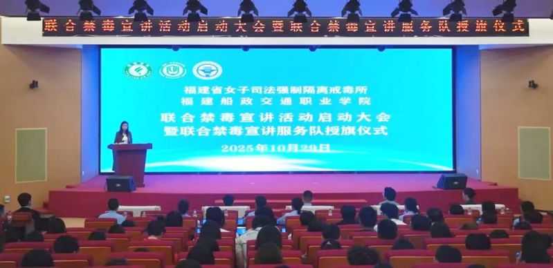 近日,我院與福建省女子司法強(qiáng)制隔離戒毒所聯(lián)合舉辦了禁毒宣講活動(dòng)啟動(dòng)大會(huì)暨聯(lián)合禁毒宣講服務(wù)隊(duì)授旗儀式。福建省司法廳戒毒管理局黨委委員、副局長(zhǎng)李佐云,學(xué)院黨委副書記張輝,福建省女子司法強(qiáng)制隔離戒毒所副所長(zhǎng)肖宏林,林則徐基金會(huì)秘書長(zhǎng)林燕頤以及戒毒所民警、各二級(jí)學(xué)院黨總支書記、學(xué)生代表近三百人參加活動(dòng)。