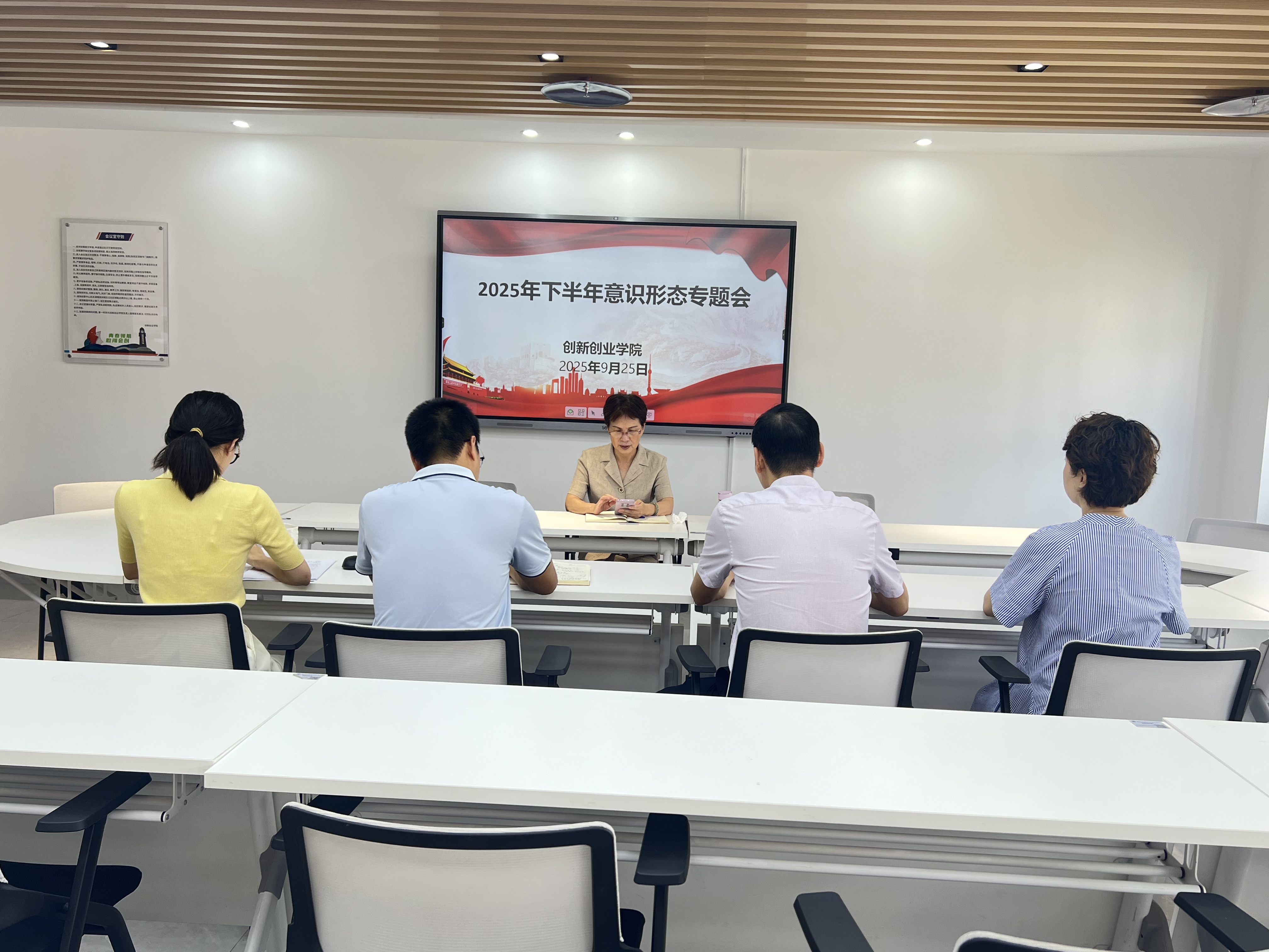 創(chuàng)新創(chuàng)業(yè)學(xué)院于2025年9月22日在藝新樓815召開了下半年意識形態(tài)專題會,會議由學(xué)院院長林霞主持,全體教職工參加。