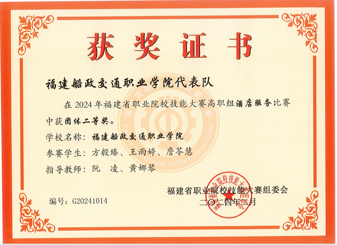 在福建省職業(yè)院校技能大賽中,蟬聯(lián)高職組酒店服務(wù)比賽、研學(xué)旅行比賽及酒水服務(wù)比賽等多個賽項(xiàng)獎項(xiàng);