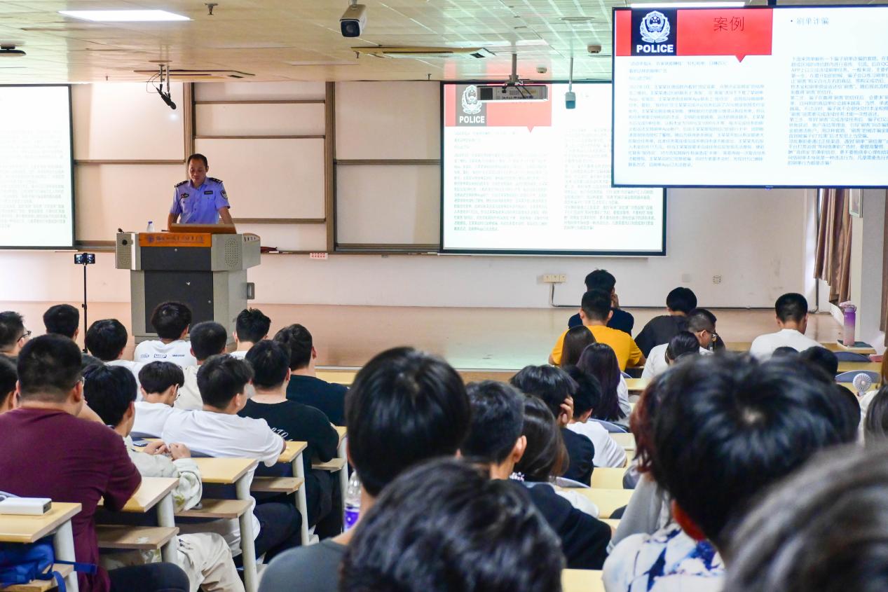 吳恒強警官首先以大量真實案例和詳實的數(shù)據(jù),向同學們介紹了常見電信網(wǎng)絡詐騙,包括刷單返利兼職、冒充網(wǎng)購客服、冒充熟人、冒充貸款客服、虛假投資理財平臺、“校園貸”詐騙等,細致分析了新型電信網(wǎng)絡類詐騙類型的本質(zhì)及特點,并提出了相應的防范措施,叮囑同學們要牢固樹立反詐騙意識,切忌貪小便宜,一旦被騙,需盡快掌握對方犯罪證據(jù)并迅速報警,切實維護自身合法權(quán)益。