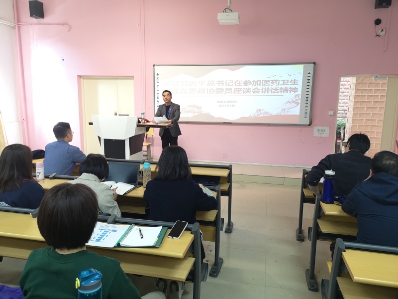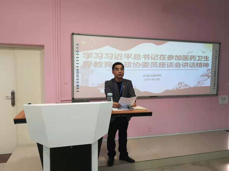 2021年3月24日,軌道交通學(xué)院在北區(qū)二號(hào)樓1-3多媒體教室召開(kāi)學(xué)習(xí)座談會(huì),認(rèn)真學(xué)習(xí)習(xí)近平總書記在參加醫(yī)藥衛(wèi)生界教育界政協(xié)委員座談會(huì)講話精神。軌道交通學(xué)院黨政領(lǐng)導(dǎo)班子、全院教職工參加座談會(huì)。座談會(huì)由孫基書記主持并作學(xué)習(xí)發(fā)言。
