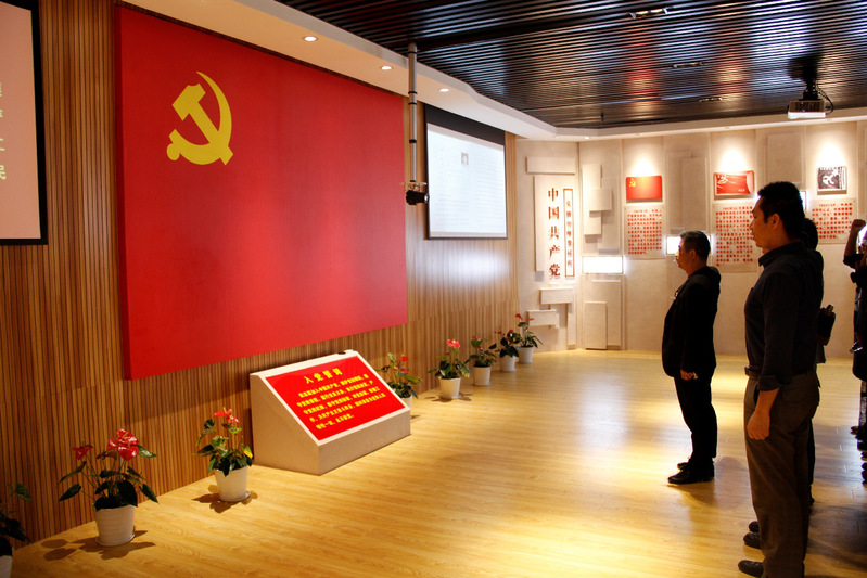沿著長廊,大家走進初心廳。在講解員的介紹下,黨員們了解了“馬上就辦、真抓實干”工作精神、福州“一棟樓”辦公的由來,對共產(chǎn)黨人的初心和使命有了更全面的認識和理解。進入黨史廳和勤廉館,黨員們體驗了“體感翻頁”的樂趣,回顧了中共黨史尤其是福州地方黨史重要事件和重要人物,了解了王荷波等9位福州歷史名人勤廉事跡,觀看了《人民領袖》紀錄短片。在紅色文化氛圍的感染下,黨員們面對紅色黨旗,高舉右拳,莊嚴宣誓。短短12句入黨誓詞,句句鏗鏘有力,使黨員們再次汲取了信仰與奮進的力量。