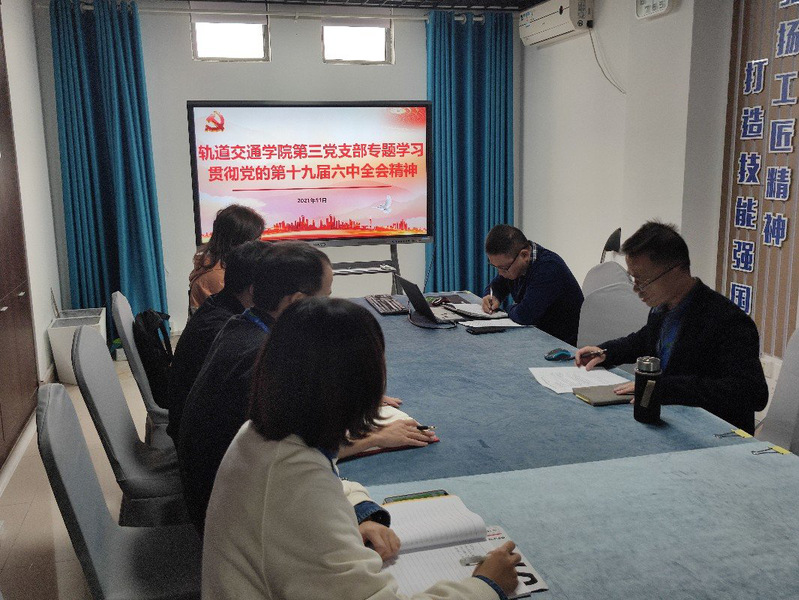 深入學(xué)習(xí)貫徹全會(huì)精神,意氣風(fēng)發(fā)踏上新征程。2021年11月19日,軌道交通學(xué)院第三黨支部召開專題學(xué)習(xí)會(huì),學(xué)習(xí)貫徹黨的十九屆六中全會(huì)精神。