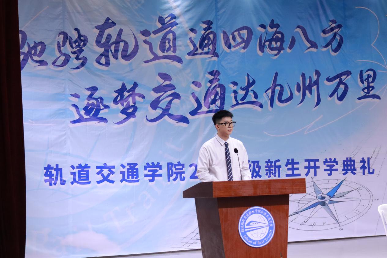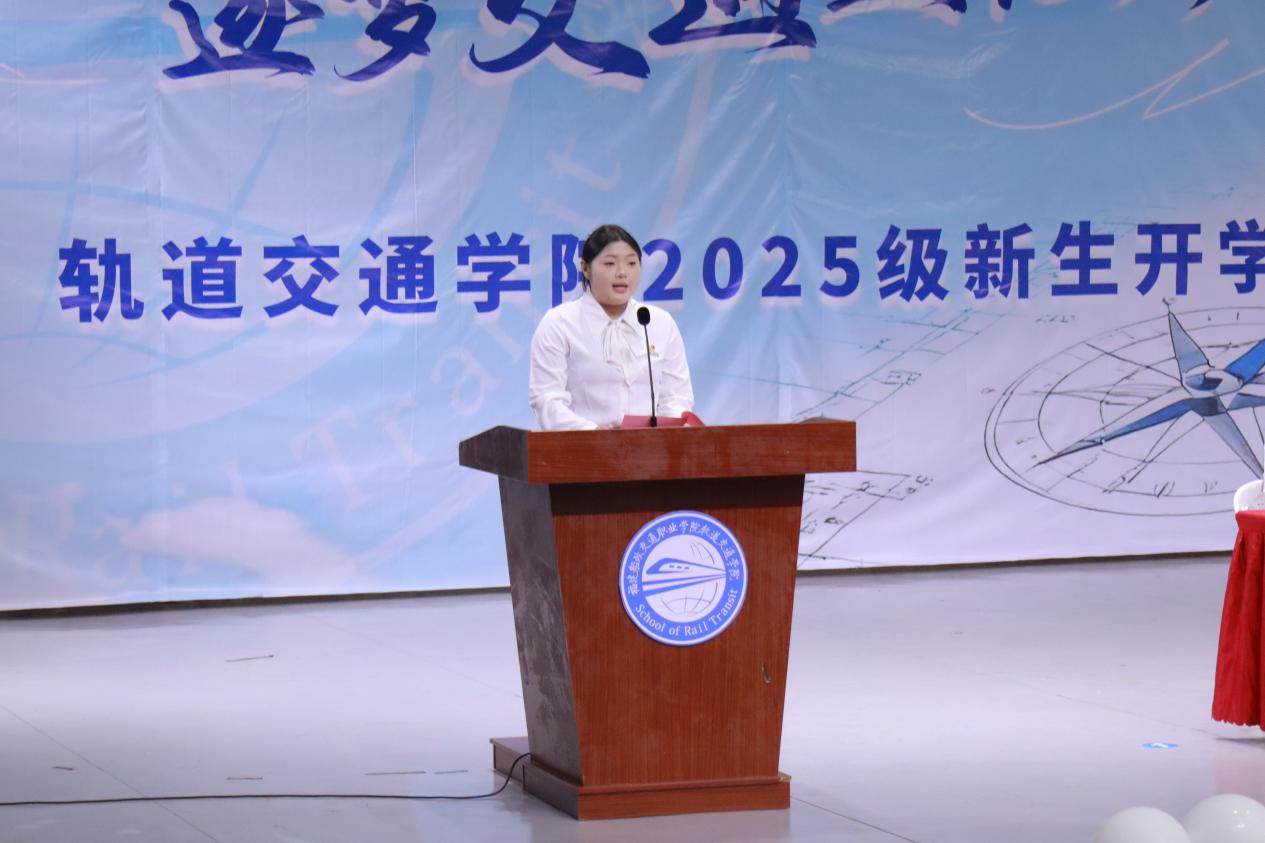 新生代表林智賢則帶著同齡人的共鳴,道出了25級(jí)新生的心聲。他分享了自己選擇軌道專業(yè)的初心,表達(dá)了對(duì)未來學(xué)習(xí)生活的期待,并代表全體新生承諾:將以勤勉踏實(shí)的態(tài)度,學(xué)好專業(yè)知識(shí),不負(fù)師長期望,努力成長為能為軌道行業(yè)貢獻(xiàn)力量的青年。