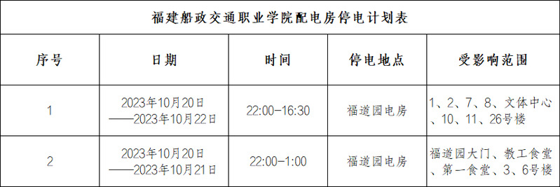 福道園電房因增容改造,現(xiàn)需要接入臨電設(shè)備,預(yù)估停電時(shí)間較長(zhǎng),具體停電時(shí)間安排如下表: