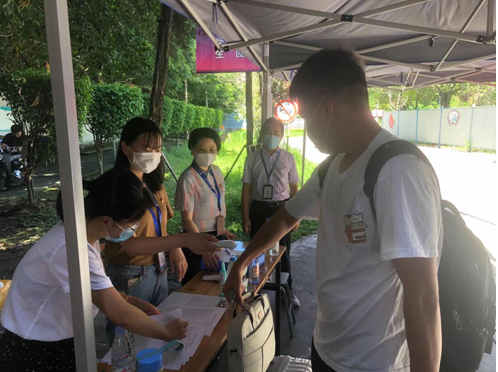 炎炎夏日,交通經(jīng)濟(jì)系全體輔導(dǎo)員老師們與共建支部的老師們輪流參與志愿工作,工作從校門口就開(kāi)始了。他們一絲不茍地一步步引導(dǎo)每一位返校同學(xué)完成手部消毒、口罩更換、體溫檢測(cè)、健康碼核驗(yàn)等工作,這一切只為每一位同學(xué)的平安。