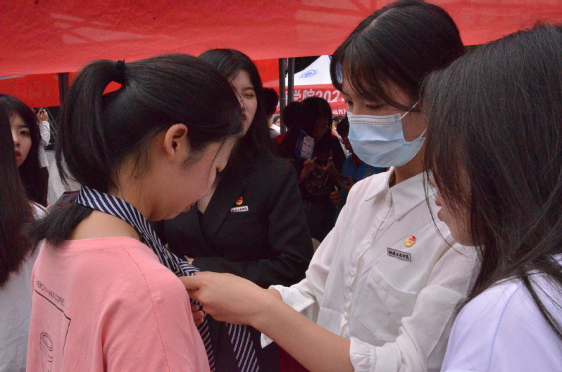 過去不知道如何挑選佩戴領(lǐng)帶的同學(xué),經(jīng)志愿者親自示范教學(xué),很快學(xué)會了搭正裝系領(lǐng)帶。在志愿者的指導(dǎo)下,同學(xué)們對社交禮儀、形象禮儀、職業(yè)禮儀等有了較為全面的了解,更加懂得以良好的禮儀表達(dá)自己,尊重他人。