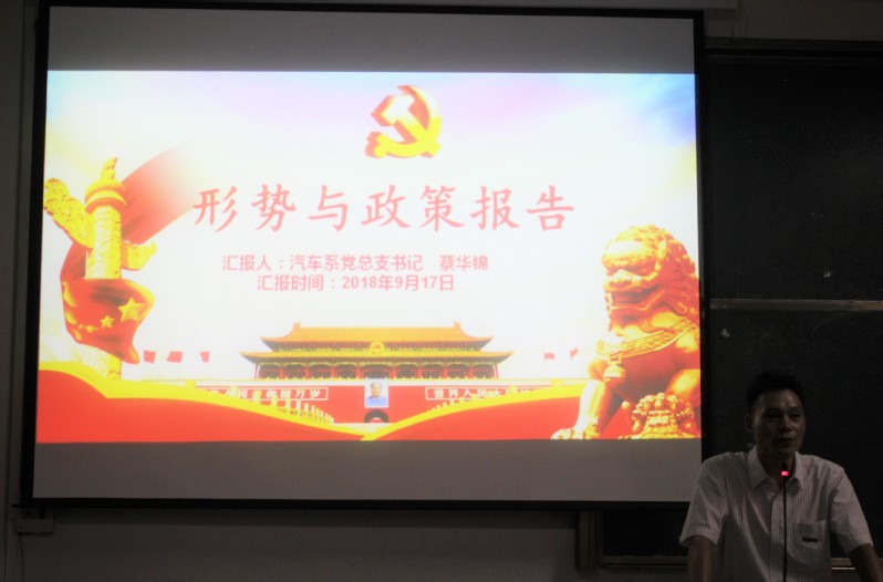 2018年9月17日,在福建船政交通職業(yè)學(xué)院北區(qū)22號樓407教室進行了“用新思想武裝頭腦 在新時代書寫人生華章”的報告。參加了報告的有汽車系教工黨員代表以及各班臨時負(fù)責(zé)人、優(yōu)秀學(xué)生代表。報告由汽車系總支部書記蔡華錦同志主持。