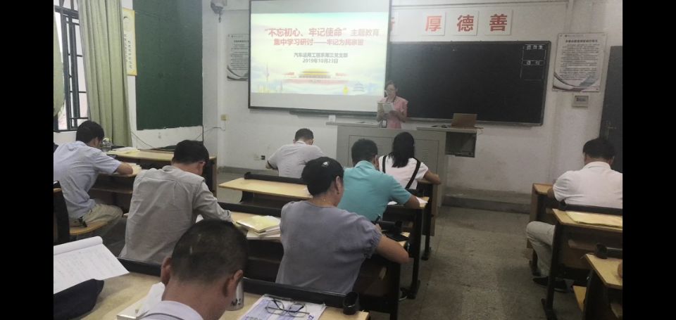 2019年10月23日,汽車系第三黨支部全體黨員,圍繞“不忘初心、牢記使命”主題教育開展第六次專題學(xué)習(xí)研討,主題為牢記為民使命。會上,許曉勤老師作重點(diǎn)發(fā)言,劉國平、湯高攀老師作互動發(fā)言。許老師指出“我們黨來自人民、植根人民、服務(wù)人民,黨的根基在人民、血脈在人民、力量在人民?!秉h員干部要堅持黨的群眾路線,牢記為民宗旨,堅持以人民為中心的發(fā)展思想,把人民放在心中的最高位置。