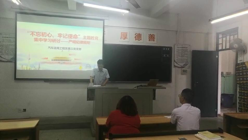 2019年10月18日,汽車系第三黨支部全體黨員,圍繞“不忘初心、牢記使命”主題教育開展第五次專題學(xué)習(xí)研討,主題為嚴(yán)明紀(jì)律。會(huì)上,陳成春老師作重點(diǎn)發(fā)言,林紹義、黃丹粟老師作互動(dòng)發(fā)言。陳成春老師“黨的政治紀(jì)律是黨的各級(jí)組織和全體黨員在思想上、行動(dòng)上同黨的路線方針政策保持一致的行為規(guī)范,是黨最重要的紀(jì)律。嚴(yán)守黨的政治紀(jì)律,對(duì)于鞏固黨的團(tuán)結(jié)統(tǒng)一,保持黨的先進(jìn)性和純潔性,增強(qiáng)黨的凝聚力和戰(zhàn)斗力,保證黨的路線方針政策和決策部署的貫徹落實(shí)至關(guān)重要。