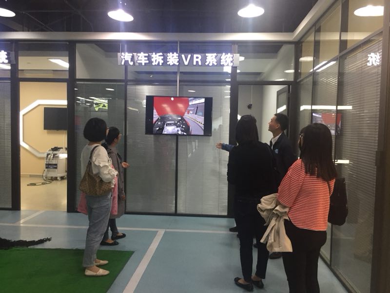 隨后,我支部黨員觀看VR+行業(yè)應(yīng)用體驗館。黨員教師對叉車駕駛、汽車拆裝VR系統(tǒng)、焊接VR系統(tǒng)、噴涂VR系統(tǒng)等行業(yè)尖端科技現(xiàn)場體驗。將VR技術(shù)引入課堂,可以讓學(xué)習(xí)變得直觀、形象、生動,激發(fā)學(xué)生的學(xué)習(xí)興趣和熱情;將汽車拆裝、焊接、涂裝等課程結(jié)合VR技術(shù),可以把汽車零件和焊接、涂裝過程逼真地展示在學(xué)生眼前,提高學(xué)生的學(xué)習(xí)積極性和學(xué)習(xí)效果。