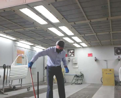 34畝地的鈑噴實訓(xùn)室,場地大、設(shè)備多、周圍又有建設(shè)工地和車流繁忙的主干道。陳星老師和葉振球老師花了整整一個早上才把這里恢復(fù)到上課狀態(tài)。