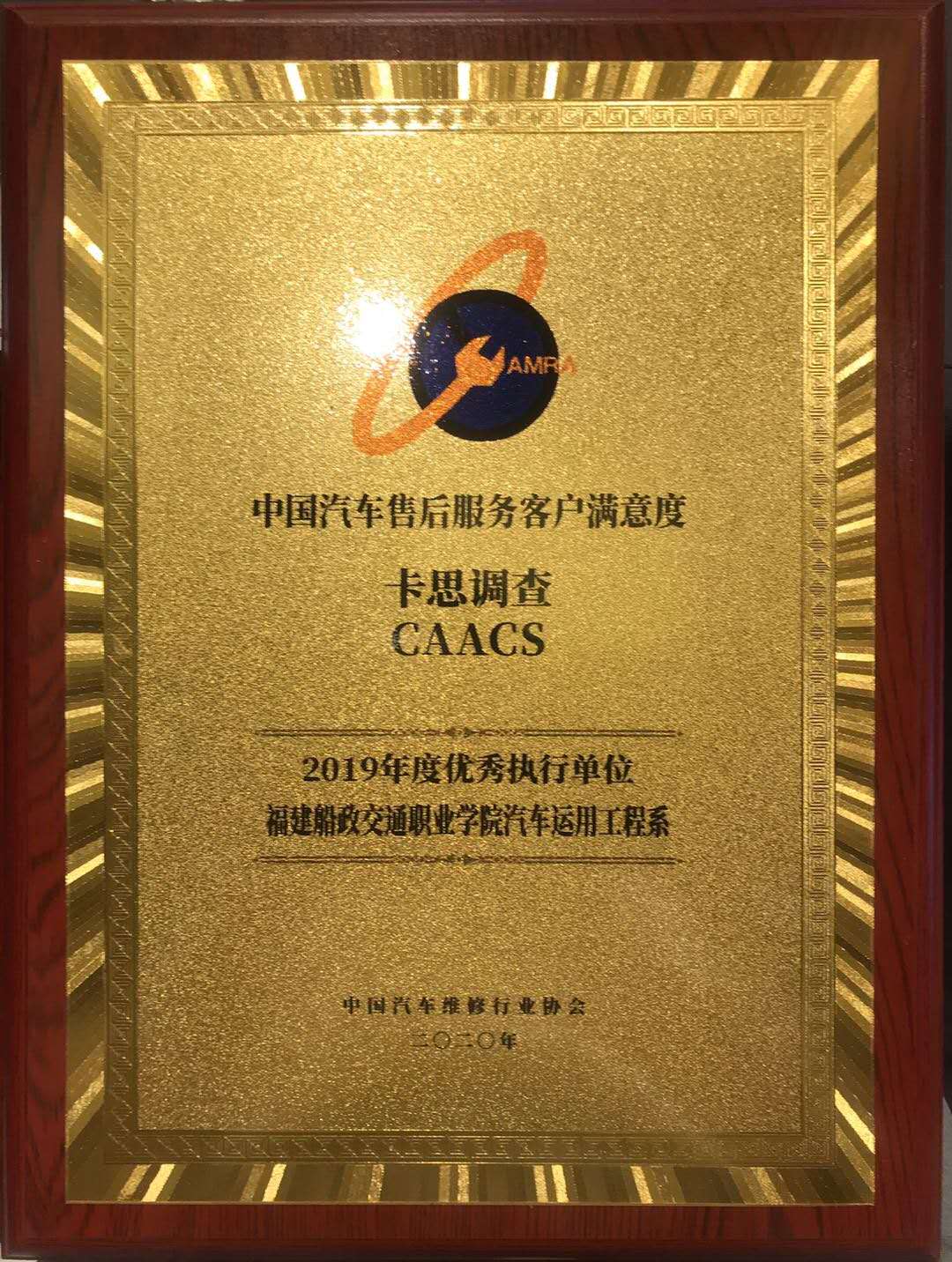 2020年8月7日中國汽車售后服務客戶滿意度(CAACS)卡思項目2019年度交流表彰會暨2020年啟動培訓會議在山東煙臺舉行。福建船政交通職業(yè)學院汽車學院作為福建地區(qū)執(zhí)行單位參加了本次大會,并獲得中國汽車維修行業(yè)協(xié)會頒發(fā)的“2019年度優(yōu)秀執(zhí)行單位”表彰。汽車學院自2013年開始負責卡思項目福建地區(qū)的執(zhí)行,于2013-2019已連續(xù)7年獲此殊榮。