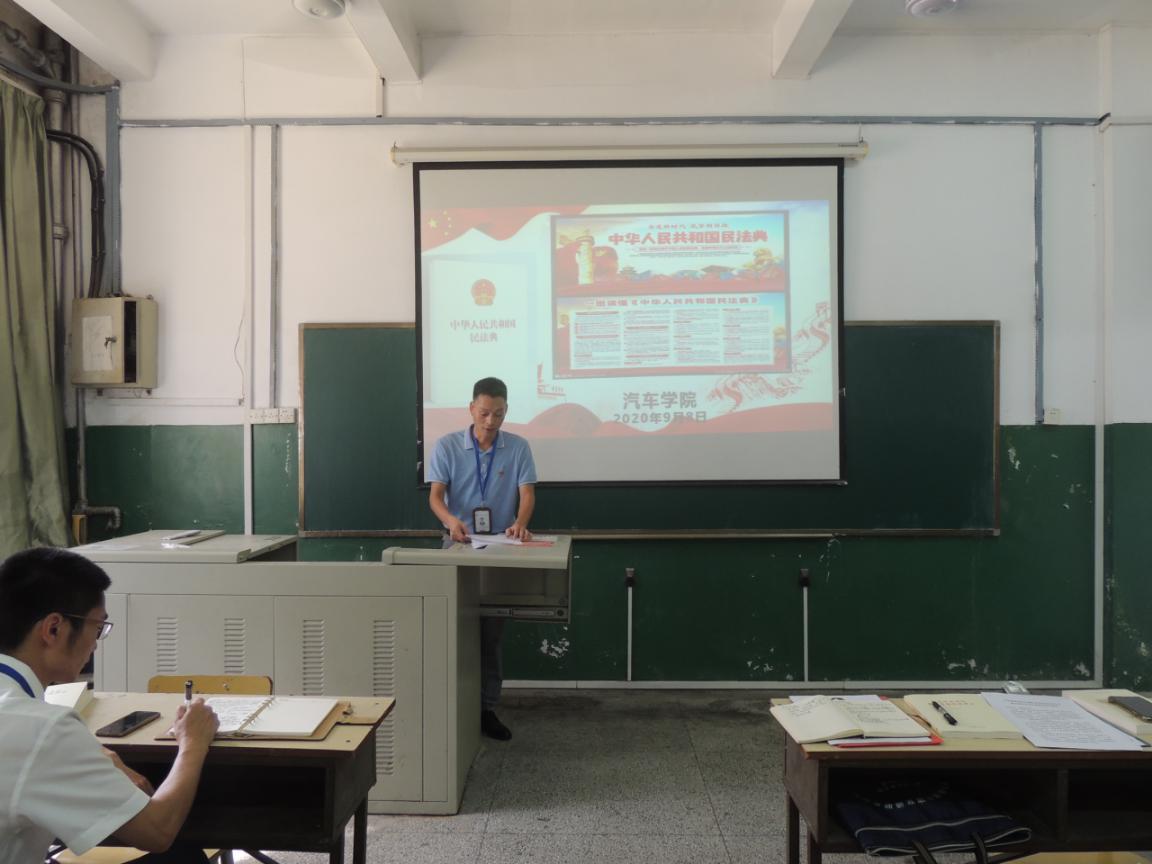 2020年9月18日下午在10號樓104教室,汽車學(xué)院組織全體教職工和學(xué)生代表學(xué)習(xí)《中華人民共和國民法典》。
