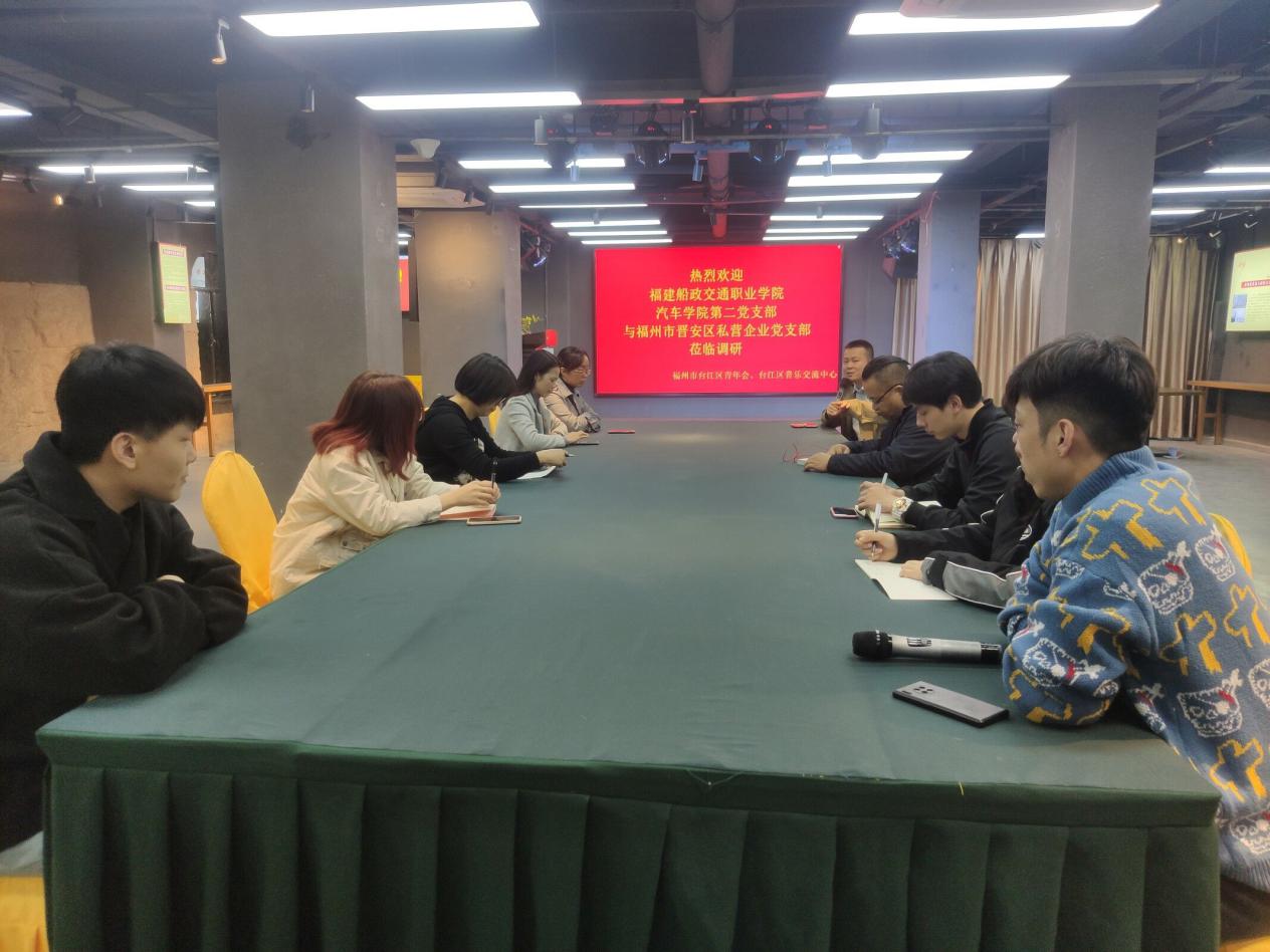為提升汽車學院第二黨支部黨建工作水平,加深共建黨支部的交流,提高汽車營銷類課程新媒體營銷教學水平,12月4日,福建船政交通職業(yè)學院汽車學院第二黨支部與福州市晉安區(qū)私營企業(yè)黨支部走進福州青年會,參觀福州青年會舊址、學習福州青年會發(fā)展歷程和革命歷史,并在臺江區(qū)音樂交流中心開展了共建支部交流活動。福州私營企業(yè)黨委委員王星華、福州市晉安區(qū)私營企業(yè)黨支部書記程元泉、福建船政交通職業(yè)學院汽車學院第二黨支部副書記何建、汽車學院汽車服務教研室骨干教師邱華楨、陳愛娟、臺江區(qū)音樂交流中心林曉銘主任和學生代表等參加了此次活動。