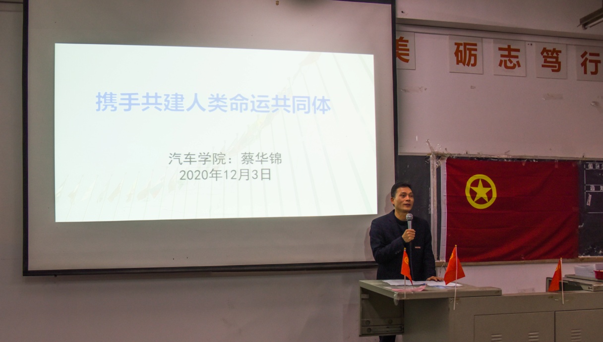 2020年12月3日,汽車學(xué)院在22號(hào)樓二階教室舉辦了“形勢與政策”課“攜手共建人類命運(yùn)共同體”專題講座。講座由汽車學(xué)院黨總支書記蔡華錦主講,100多名學(xué)生參加了講座。