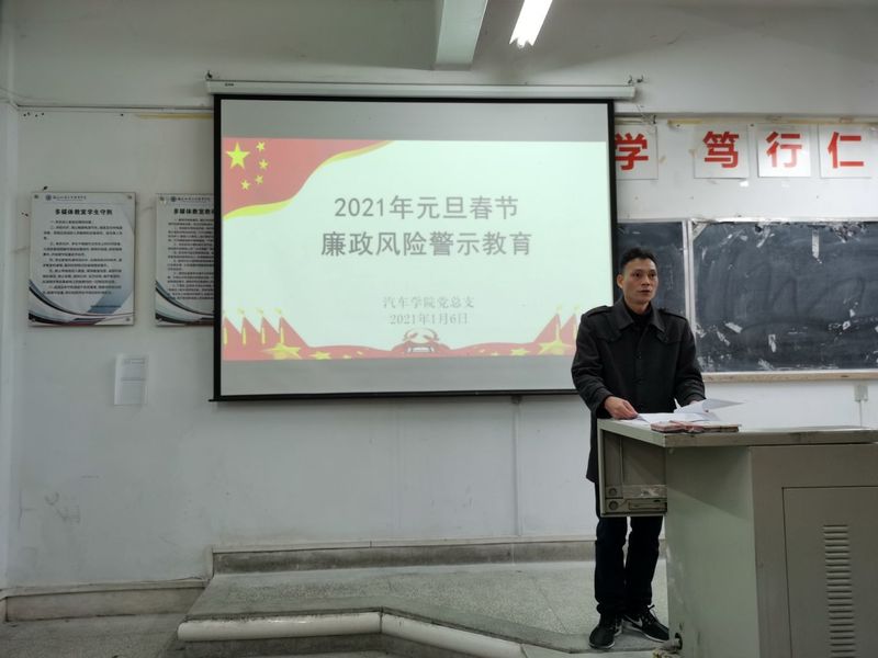 為進一步嚴明紀律、正風(fēng)肅紀,落實廉潔自律和厲行節(jié)約有關(guān)規(guī)定,繼續(xù)深化鞏固落實中央八項規(guī)定精神,杜絕“四風(fēng)”,確保風(fēng)清氣正、廉潔過節(jié),2021年1月6日,汽車學(xué)院召開2021年元旦春節(jié)前教職工廉政警示教育大會,會議由總支書記蔡華錦同志主持,學(xué)校紀委辦公室副主任林栩同志與汽車學(xué)院全體黨政干部、教職工參加了會議。