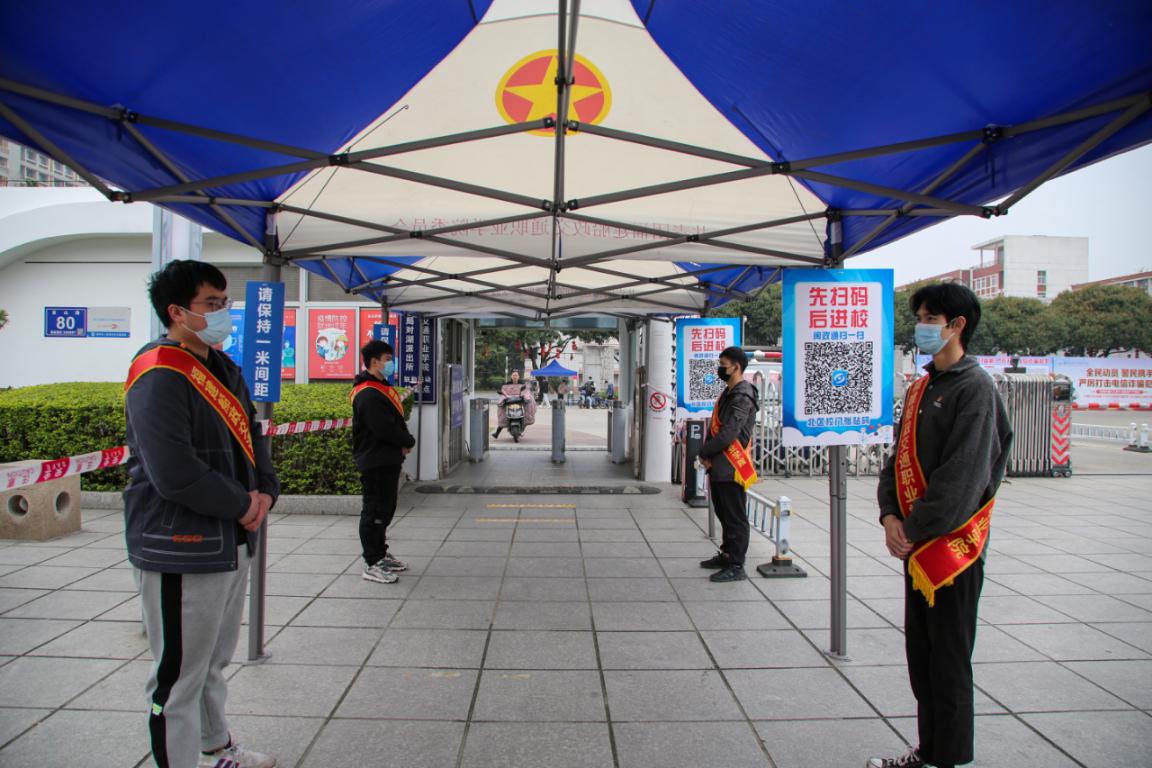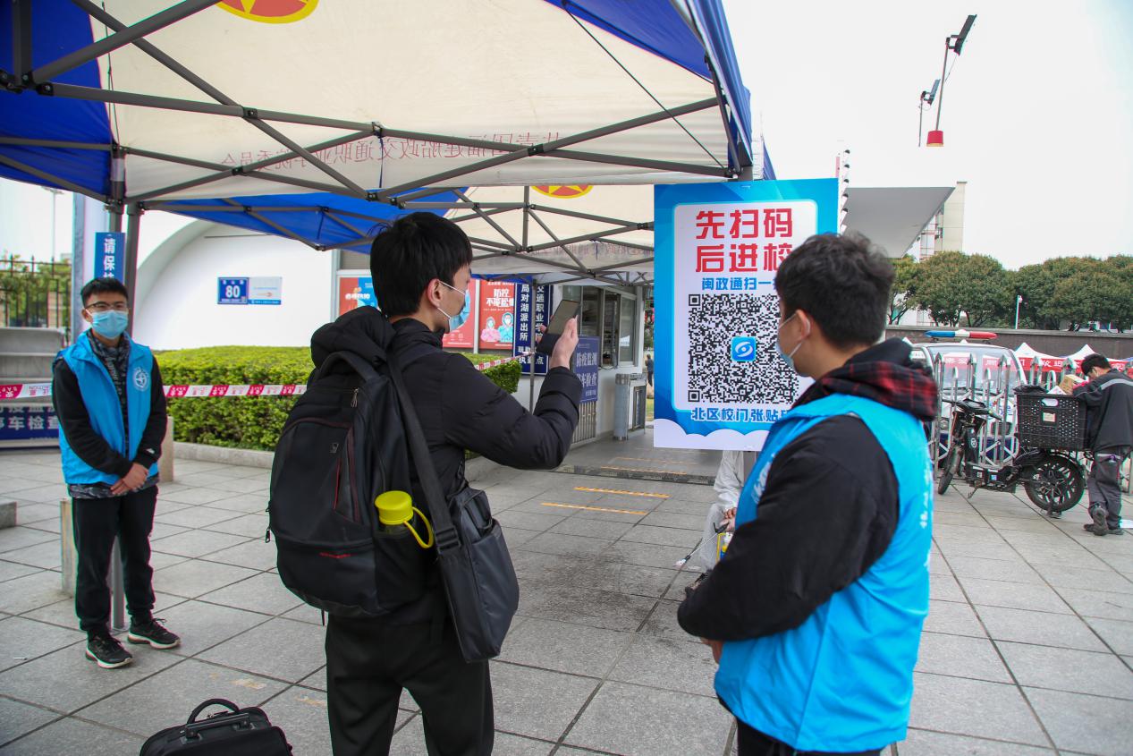 報(bào)道點(diǎn)志愿者對返校學(xué)生進(jìn)行登記,并進(jìn)行體溫監(jiān)測登記以及收集同學(xué)們上交的《健康承諾書》。