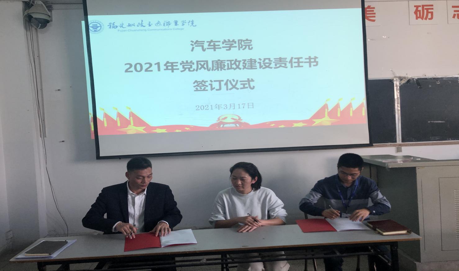 2021年3月17日下午,汽車學(xué)院召開2021年深化全面從嚴(yán)治黨暨強化師德師風(fēng)建設(shè)工作部署會,并舉行黨風(fēng)廉政責(zé)任書簽訂儀式。汽車學(xué)院黨總支蔡華錦書記主持會議,全體班子成員、黨員領(lǐng)導(dǎo)干部和教職工參加了會議。