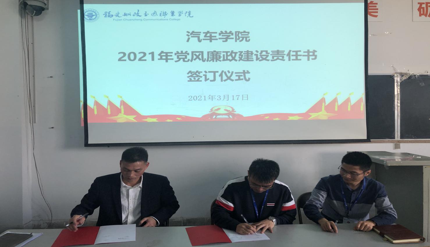 會上,汽車學(xué)院黨總支蔡華錦書記和主持工作的蘇慶列副院長分別與系辦公室主任陳方銳、分團委書記余晨煒、教研室主任何建、朱劍寶、梁霖鋒、李智強及實訓(xùn)中心主任黃知秋等6位同志現(xiàn)場簽訂了《汽車學(xué)院黨風(fēng)廉政責(zé)任書》,進(jìn)一步明確科室負(fù)責(zé)人責(zé)任。