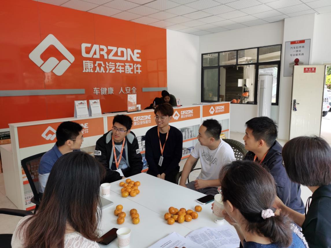 第二天,蘇副院長一行到新康眾汽車配件有限公司看望頂崗實習(xí)學(xué)生并做企業(yè)用人需求調(diào)研。目前我院有15名學(xué)生在新康眾汽車配件公司實習(xí)。蘇院長詢問了實習(xí)生未來在公司的發(fā)展渠道,公司華南區(qū)總監(jiān)隋鑫、人資經(jīng)理陳琳介紹了公司發(fā)展歷史、目前規(guī)模和未來愿景,雙方就汽車后市場最新發(fā)展趨勢展開了討論,初步達成訂單班辦學(xué)協(xié)議。