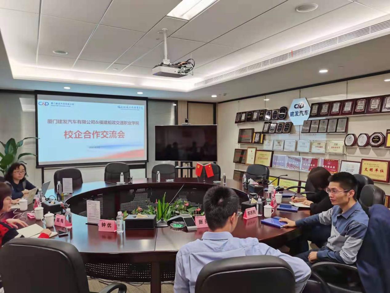 蘇慶列副院長一行首先前往廈門建發(fā)汽車有限公司,與建發(fā)汽車人力資源總監(jiān)張弛、黨群工作部總經(jīng)理孫梅、校企合作負(fù)責(zé)人吳雨蔣、黃瑞琦等人開展校企合作交流會,校企雙方就6年來的合作成果進行了總結(jié),對未來合作方向做出規(guī)劃和展望。