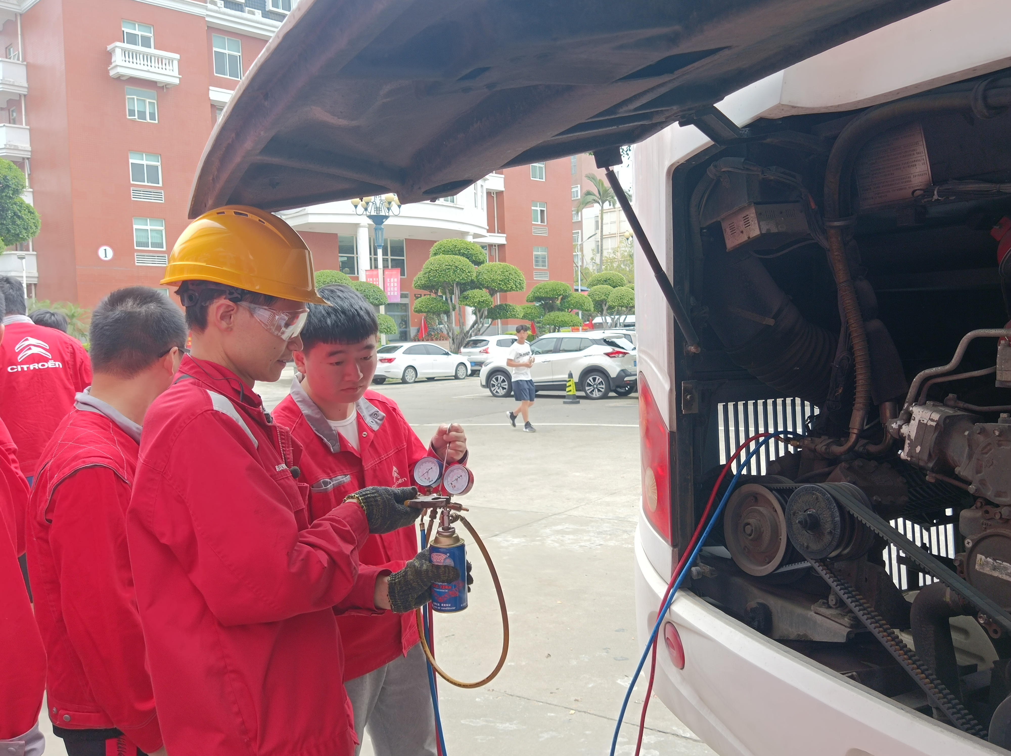 5月23日,天高氣爽,汽車學(xué)院開啟了職教周活動之“空調(diào)檢測與加氨”。