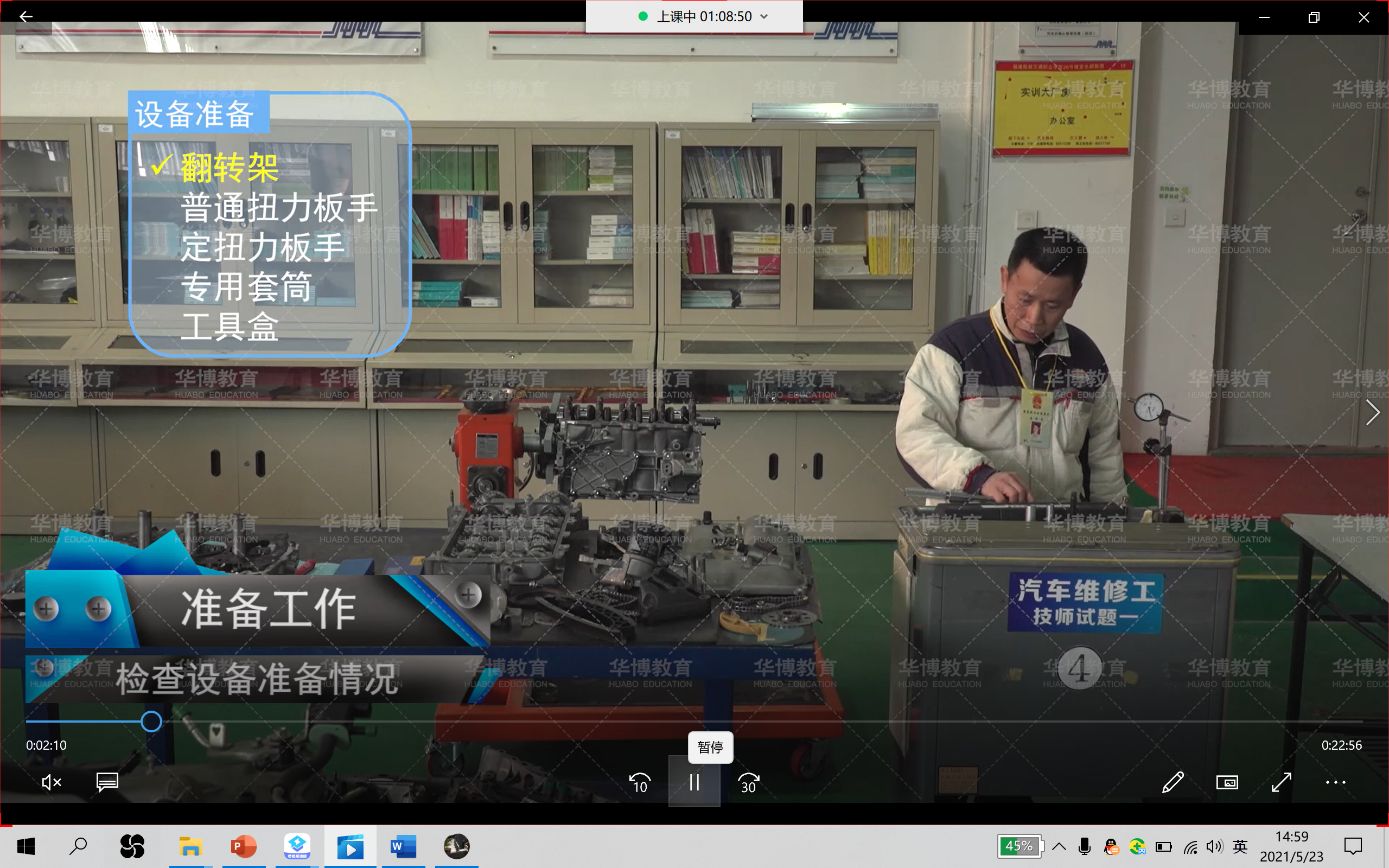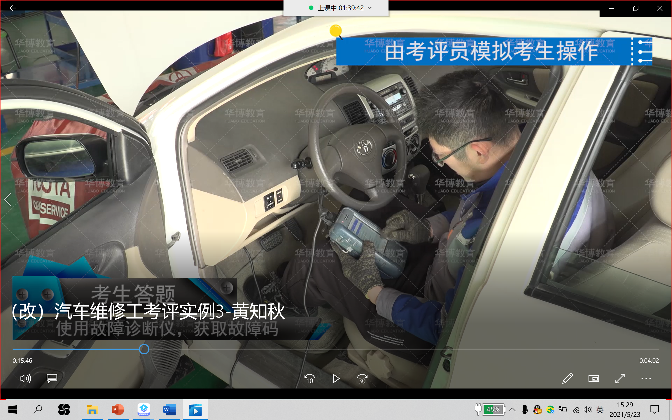 隨后,展示了兩段典型的汽車維修工高級的實(shí)操考核視頻,分別是汽車測量或檢驗(yàn)類考題(曲軸拆裝及檢測)和故障診斷類考題(發(fā)動(dòng)機(jī)怠速不穩(wěn)的故障診斷)。