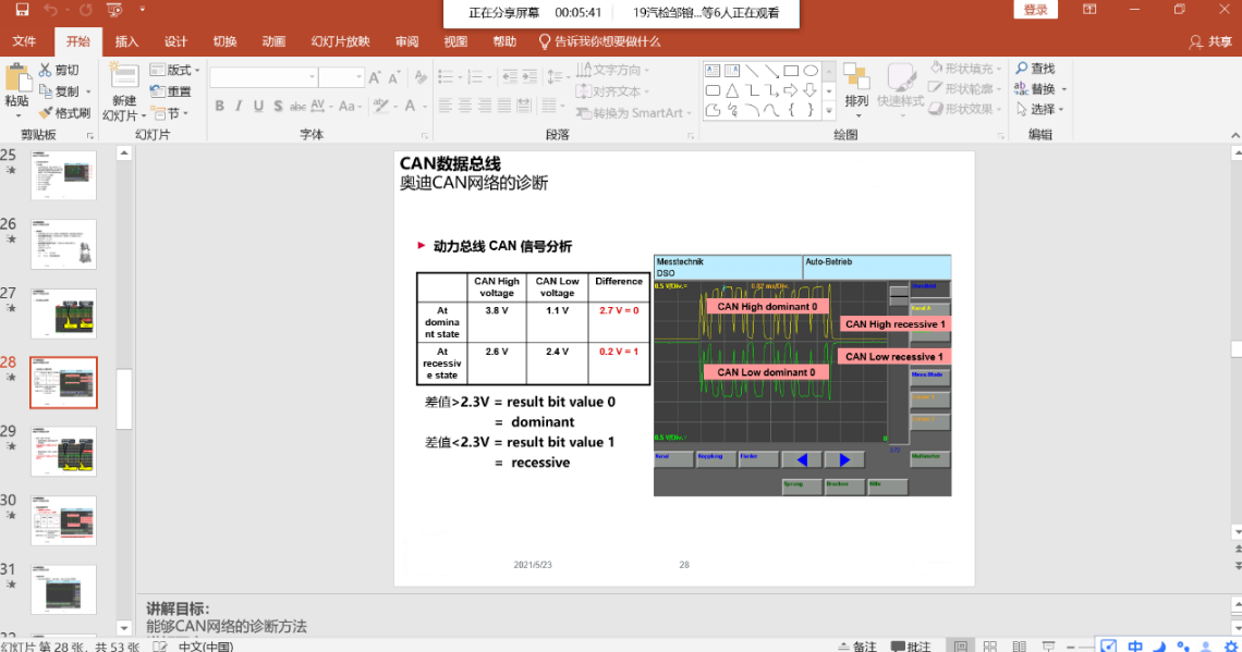 理論課程為《客戶關(guān)系管理》介紹了客戶回訪管理和客戶關(guān)懷活動(dòng);《汽車網(wǎng)絡(luò)與信息系統(tǒng)檢》介紹了高速CAN線的標(biāo)準(zhǔn)電壓波形,以及高速CAN線在發(fā)生各類故障時(shí),電壓波形會產(chǎn)生的變化,并根據(jù)波形變化情況判斷故障類型。同時(shí),能夠按照正確操作找到故障點(diǎn),并排除故障。
