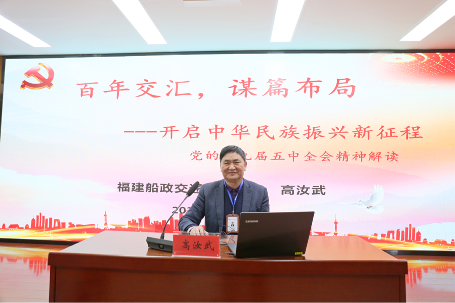 報(bào)告會(huì)上,高汝武副院長(zhǎng)以《百年交匯,謀篇布局---開啟中華民族振興新征程》為標(biāo)題,圍繞黨的十九屆五中全會(huì)召開的背景、全會(huì)公報(bào)主要內(nèi)容和開啟全面建設(shè)社會(huì)主義現(xiàn)代化國(guó)家新征程三個(gè)部分進(jìn)行輔導(dǎo)宣講,對(duì)二〇三五年遠(yuǎn)景目標(biāo)、“十四五”時(shí)期十二大項(xiàng)工作部署等重點(diǎn)內(nèi)容作了詳細(xì)解讀,指出十九屆五中全會(huì)是在當(dāng)今世界正經(jīng)歷百年未有之大變局、百年未遇之大疫情、我國(guó)正處于“兩個(gè)一百年”奮斗目標(biāo)的歷史交匯點(diǎn)上,召開的一次重要會(huì)議,以宏偉藍(lán)圖凝心聚力、用苦干實(shí)干走向未來(lái),是中國(guó)共產(chǎn)黨帶領(lǐng)人民建設(shè)國(guó)家、走向復(fù)興的寶貴經(jīng)驗(yàn)。黨的十九屆五中全會(huì)發(fā)出了開啟全面建設(shè)社會(huì)主義現(xiàn)代化國(guó)家新征程、向第二個(gè)百年奮斗目標(biāo)進(jìn)軍的動(dòng)員令、集結(jié)號(hào),復(fù)興在望,金鼓催征,他勉勵(lì)參會(huì)全體黨員干部,緊跟黨的全面領(lǐng)導(dǎo),無(wú)畏風(fēng)雨、奮勇拼搏,去創(chuàng)造民族復(fù)興新奇跡。