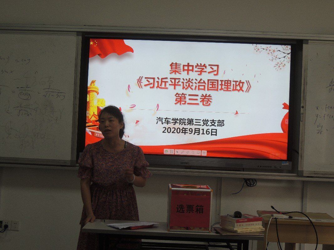 2020年9月16日,汽車學院各黨支部召開《習近平談治國理政》學習研討會。