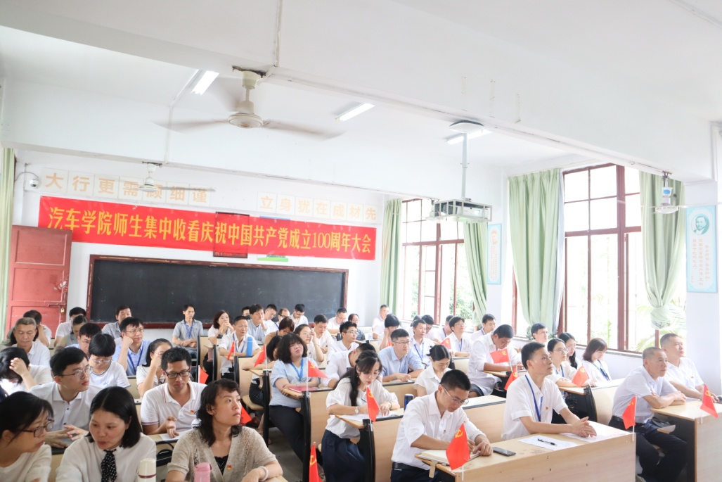 2021年7月1日上午8時(shí),慶祝中國共產(chǎn)黨成立100周年大會(huì)在北京天安門廣場(chǎng)隆重舉行。汽車學(xué)院黨政班子成員、總支委員、各支部委員和師生代表集中北區(qū)8號(hào)樓教室集體觀看慶祝大會(huì)直播盛況。