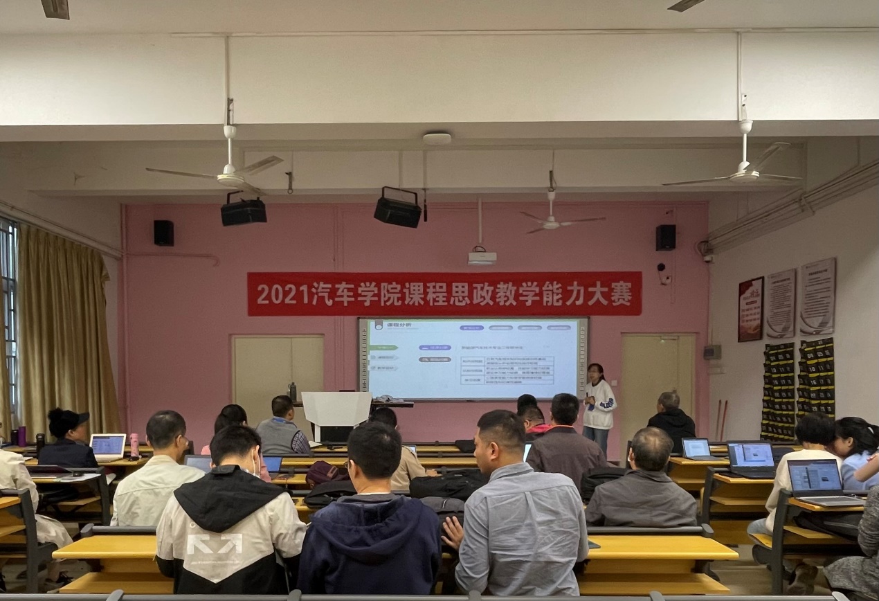 汽車學(xué)院高度重視此次大賽,學(xué)院領(lǐng)導(dǎo)組織召開(kāi)專題研討會(huì)并廣泛宣傳動(dòng)員,發(fā)動(dòng)教師積極參與,為課程思政教學(xué)能力大賽順利開(kāi)展?fàn)I造了良好的氛圍。比賽自10月份啟動(dòng)以來(lái),汽車學(xué)院教師積極報(bào)名,3位教師報(bào)名“教師組別”;2位教研室主任報(bào)名“教研室主任組別”;林可春副院長(zhǎng)報(bào)名“二級(jí)學(xué)院院領(lǐng)導(dǎo)組別”。教師精心準(zhǔn)備,在比賽中展現(xiàn)了嫻熟的課程思政教學(xué)能力。本次大賽由教學(xué)設(shè)計(jì)和現(xiàn)場(chǎng)教學(xué)兩部分組成,首先由各位參賽選手上臺(tái)進(jìn)行現(xiàn)場(chǎng)教學(xué)展示,然后各位評(píng)委針對(duì)該選手提交的教學(xué)設(shè)計(jì)材料和現(xiàn)場(chǎng)教學(xué)部分進(jìn)行點(diǎn)評(píng)。參賽教師從教學(xué)目標(biāo)、教學(xué)設(shè)計(jì)思路、思政元素融入點(diǎn)以及預(yù)期的教學(xué)效果等方面說(shuō)課,并通過(guò)現(xiàn)場(chǎng)教學(xué)綜合展示課堂教學(xué)融入思想政治教育的思路、方法。