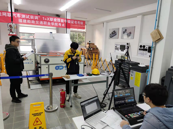 為貫徹落實(shí)《國(guó)家職業(yè)教育改革實(shí)施方案》和《關(guān)于在院校實(shí)施“學(xué)歷證書(shū)+若干職業(yè)技能等級(jí)證書(shū)”制度試點(diǎn)方案》精神,高效有序推進(jìn)智能網(wǎng)聯(lián)汽車(chē)1+X測(cè)試裝調(diào)職業(yè)技能等級(jí)(智能傳感器領(lǐng)域中級(jí))證書(shū)的實(shí)施,汽車(chē)學(xué)院汽車(chē)智能技術(shù)專業(yè)先后組織完成了師資培訓(xùn)、考評(píng)員申報(bào)、學(xué)生教學(xué)培訓(xùn)、考點(diǎn)申報(bào)與建設(shè)、考證組織等工作,于2021年11月26日-11月28日順利完成考證工作,共計(jì)50人參加考試。