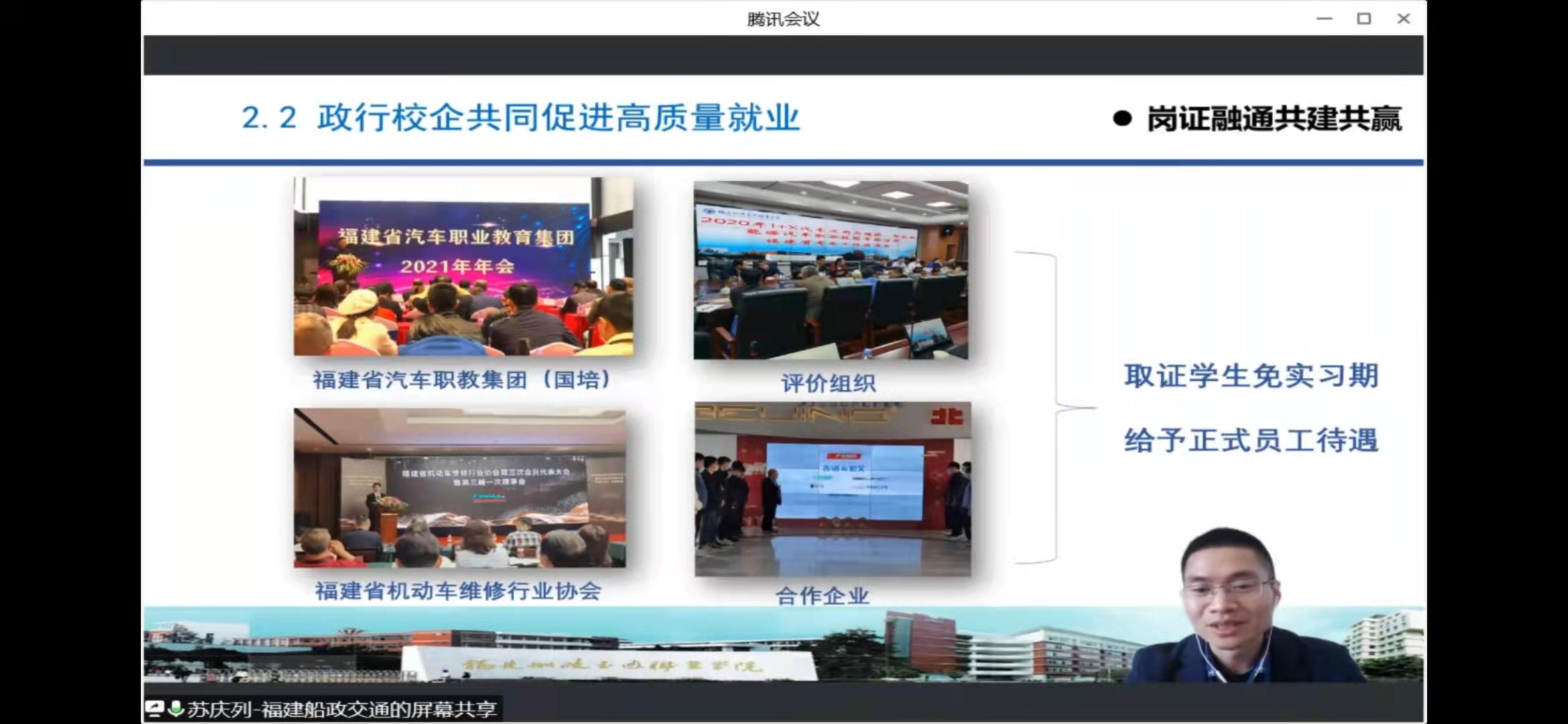 汽車學(xué)院蘇慶列院長受邀在會(huì)上作“崗證融通基地建設(shè)設(shè)想”的報(bào)告,分享了汽車學(xué)院對(duì)接1+X職業(yè)證書制度,將崗證融通融入教學(xué),研修人才培養(yǎng)方案、重構(gòu)課程教學(xué)標(biāo)準(zhǔn)、實(shí)施模塊化教學(xué)等教學(xué)改革,從校企合作共建崗證融通實(shí)訓(xùn)基地、政行校企共同促進(jìn)高質(zhì)量就業(yè)、崗證融通基地助力1+X證書推廣三個(gè)維度提出了崗證融通共建共贏的設(shè)想,報(bào)告獲得與會(huì)代表的熱烈好評(píng)。