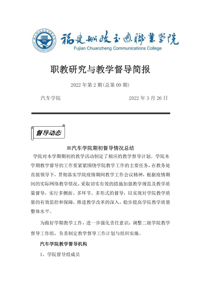2021-2022-2學(xué)期汽車學(xué)院教學(xué)督導(dǎo)簡報(bào)第1期