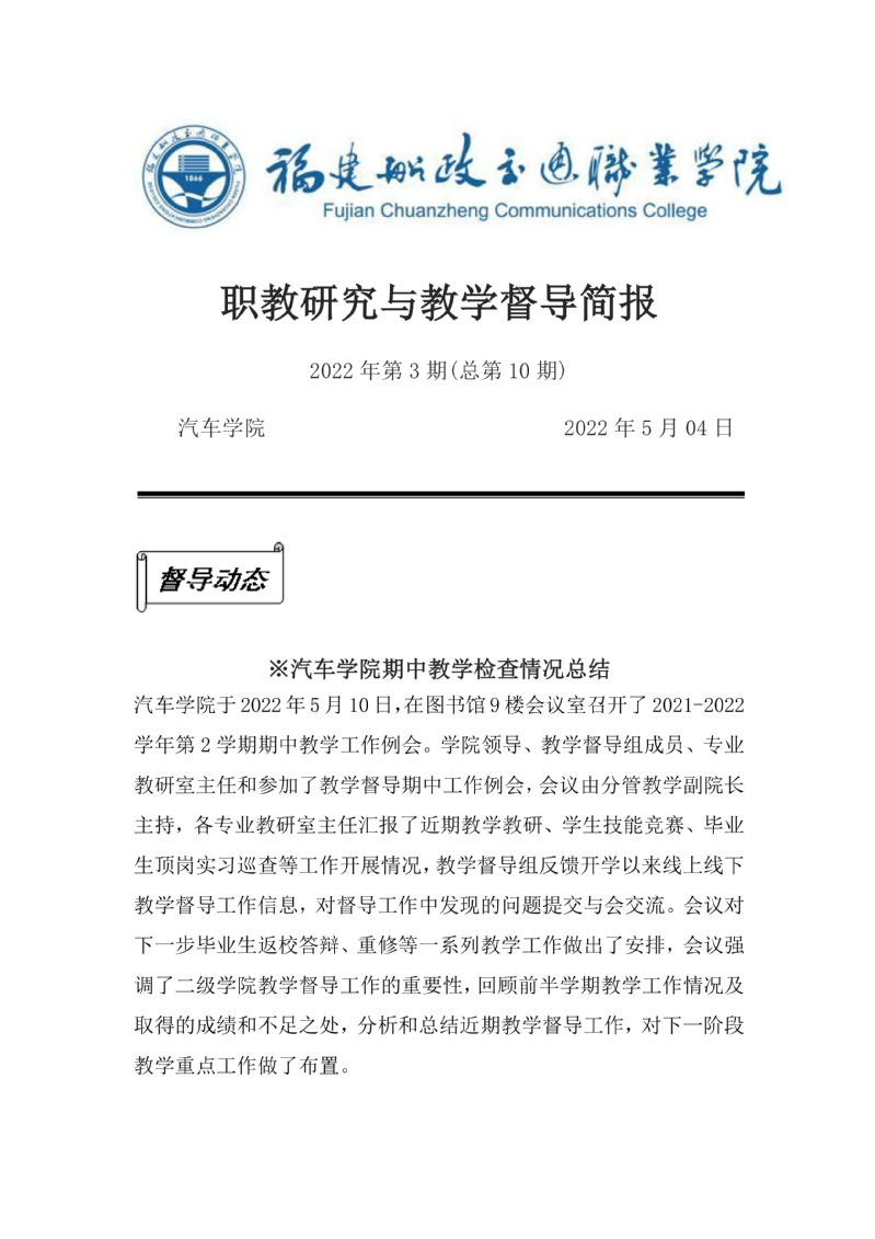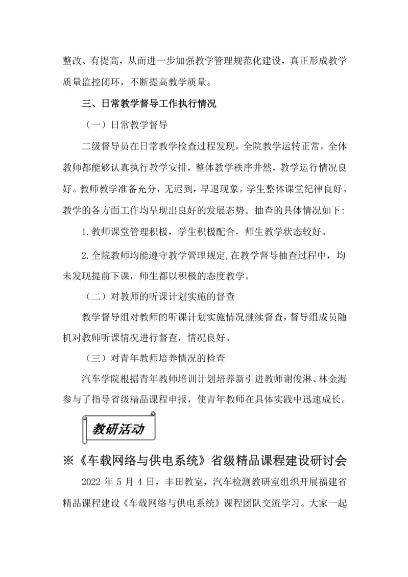 2021-2022-2學(xué)期汽車學(xué)院教學(xué)督導(dǎo)簡(jiǎn)報(bào)第2期