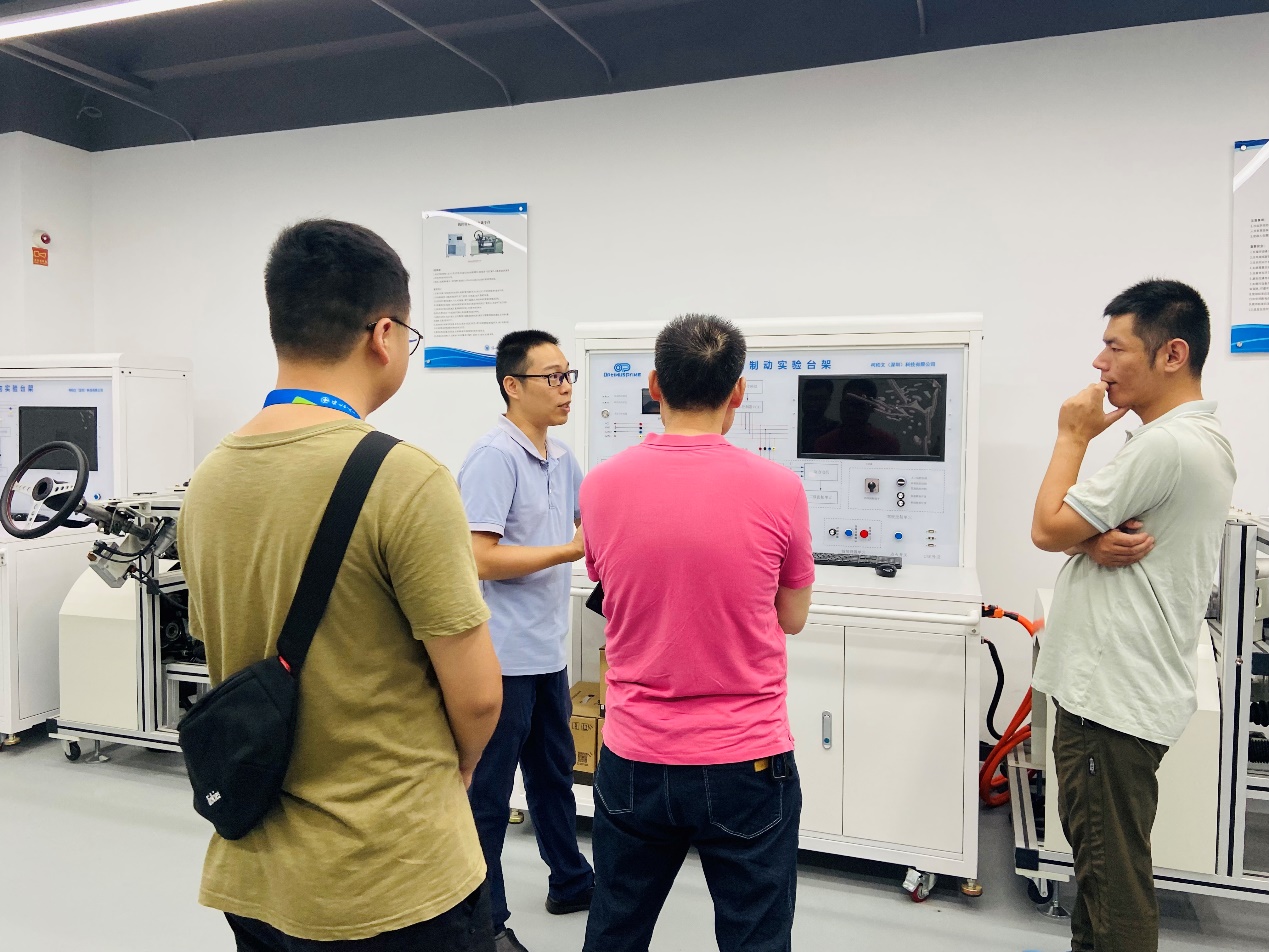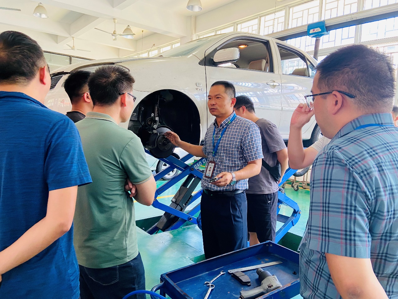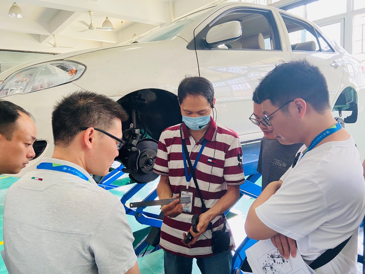 此次培訓主要圍繞“豐田汽車四萬公里維護項目實操、智能網(wǎng)聯(lián)實訓室線控驅(qū)動制動臺架及新能源三電技術”。17-18日,主講老師帶領學員熟悉了豐田實訓室的汽車維修環(huán)境和修理工具,了解汽車基本構造與工作原理,從九個頂起位置的檢查和維護內(nèi)容展開了詳細的介紹。24-25日,在智能網(wǎng)聯(lián)技術實訓室和新能源技術實訓室,主講老師分別針對線控驅(qū)動制動臺架和新能源三電技術進行了實訓講解。過程中,主講老師將講解示范與實際案例分析相結合,又鼓勵每位學員動手實踐,從中總結出重點、難點,充分調(diào)動學員的主觀能動性,在短時間讓學員們了解汽車維護關鍵技能規(guī)范化操作方法,掌握汽車故障診斷基本方法與典型故障的診斷與排除方法。