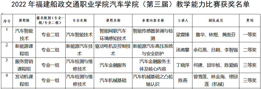 汽車學院蘇慶列院長感謝陳振源教授的點評和指導,同時也感謝全體教師為競賽做出的努力并提出三點希望,一是全體教師要明確教學能力大賽目的和意義,增強提高教學能力的主動性,教師要在教學方法、教學手段和技能水平上與時俱進,提升人才培養(yǎng)質(zhì)量;二是教師要明晰大賽評價標準,領會大賽對教師教學能力提高的方向性指引,增強在業(yè)務能力提升方面的針對性,在教學過程中,有意識地融入思想政治職業(yè)素養(yǎng)、勞動精神和工匠精神等育人元素;三是以大賽為抓手,立足課程改革和教學改革,優(yōu)化師資結(jié)構(gòu)和能力結(jié)構(gòu),持之以恒推進高水平教學團隊建設,使汽車學院工作再上臺階。