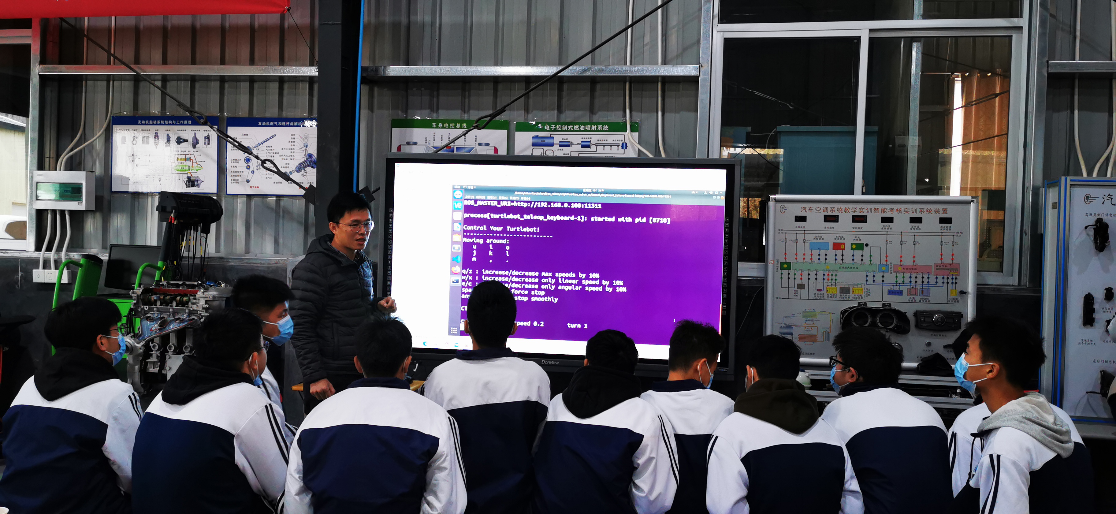 12月14日早上在福建省閩清職業(yè)中專學(xué)校,汽車學(xué)院汽車學(xué)院副院長朱劍寶將實訓(xùn)耗材贈送到汽車實訓(xùn)中心,并組織教學(xué)團隊在汽車實訓(xùn)中心開展現(xiàn)場實踐教學(xué),分為電動助力轉(zhuǎn)向系統(tǒng)檢修、汽車保養(yǎng)維護、機器人模型制作、ROS智能小車控制、汽車電氣系統(tǒng)檢測等模塊進(jìn)行輪轉(zhuǎn)。