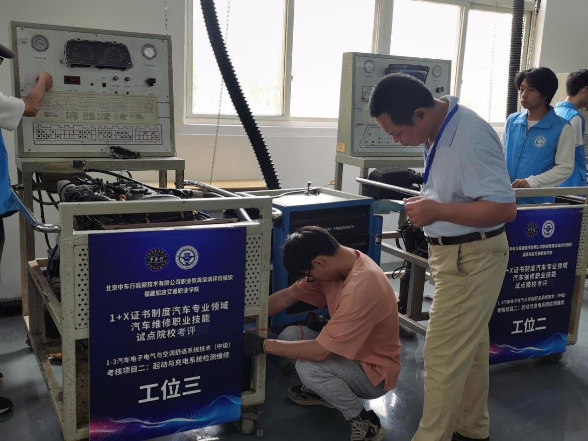 2023年6月25日,福建船政交通職業(yè)學(xué)院“1+X汽車運(yùn)用與維修”職業(yè)技能等級(jí)證書(中級(jí))考核工作圓滿結(jié)束。此次考核4個(gè)項(xiàng)目分別在豐田實(shí)訓(xùn)室、吉利實(shí)訓(xùn)室和發(fā)動(dòng)機(jī)電控實(shí)訓(xùn)室進(jìn)行。我院汽車檢測(cè)與維修技術(shù)專業(yè)共有40名學(xué)生參加了“1+X汽車運(yùn)用與維修”證書考核。