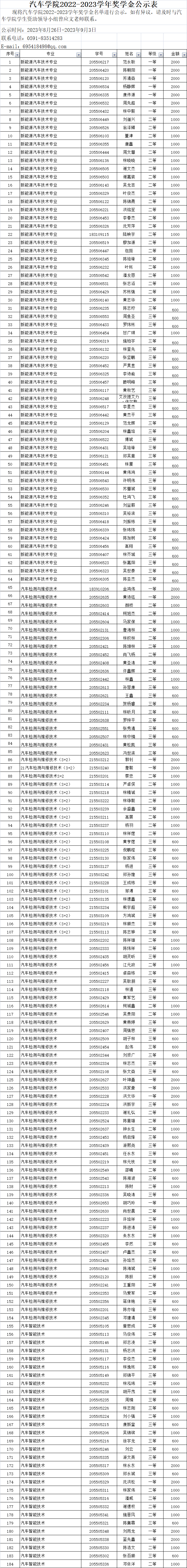 汽車學院2022-2023學年獎學金公示表