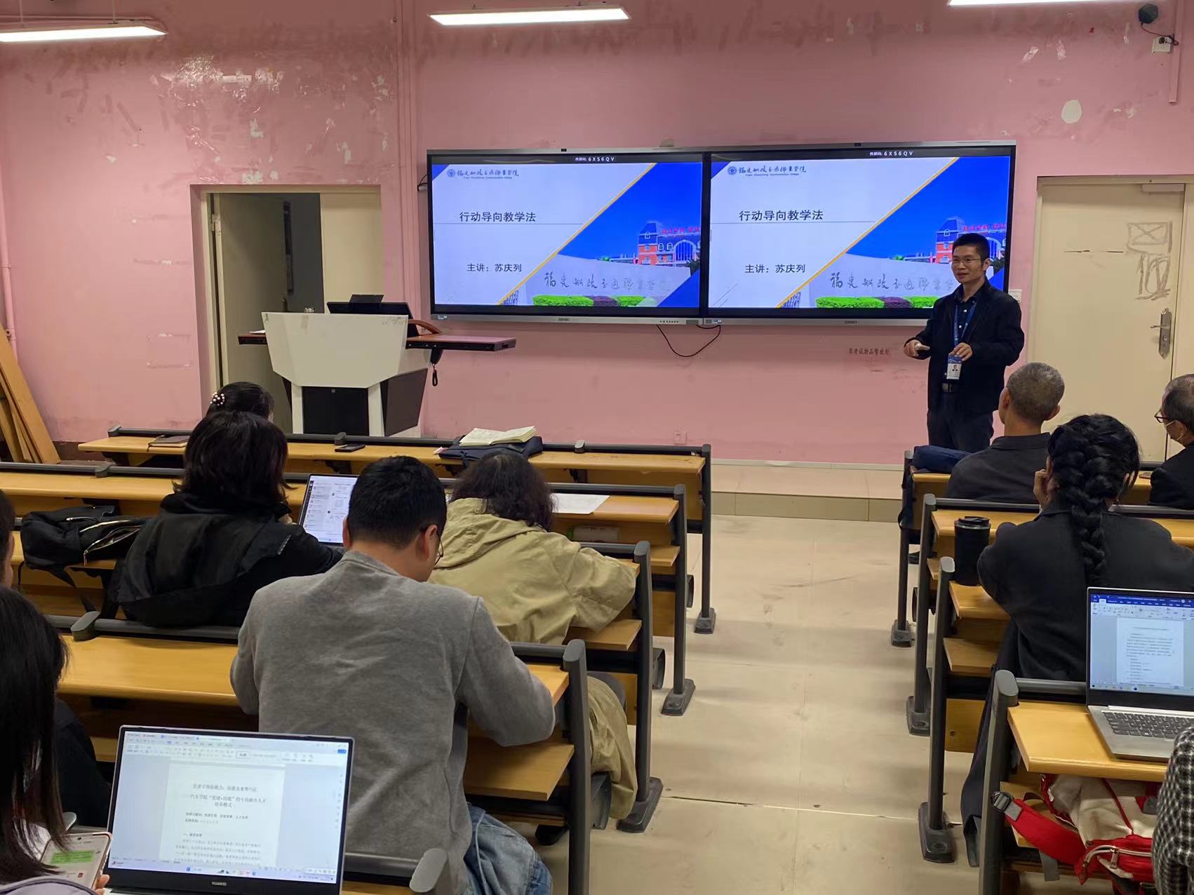 會后院長蘇慶列結(jié)合此次大會做了行動導(dǎo)向教學(xué)法專題講座,闡述了在教學(xué)過程中如何充分發(fā)揮學(xué)生的主體作用和教師的主導(dǎo)作用,如何從完成某一方面的“任務(wù)”著手,通過引導(dǎo)學(xué)生完成“任務(wù)”,最大限度地把課堂還給學(xué)生上,發(fā)揮學(xué)生的主體性、主動性和創(chuàng)造性,讓學(xué)生“身動、心動、神動”。