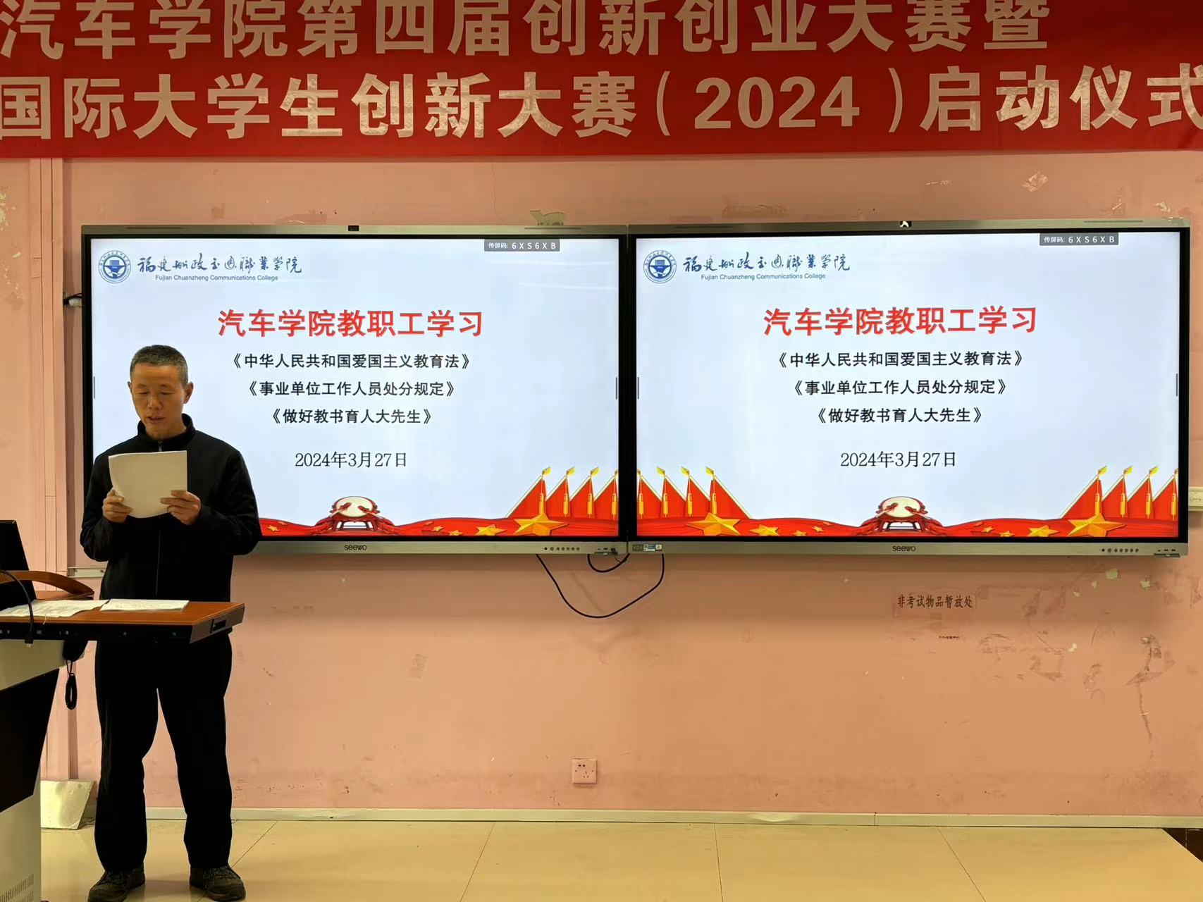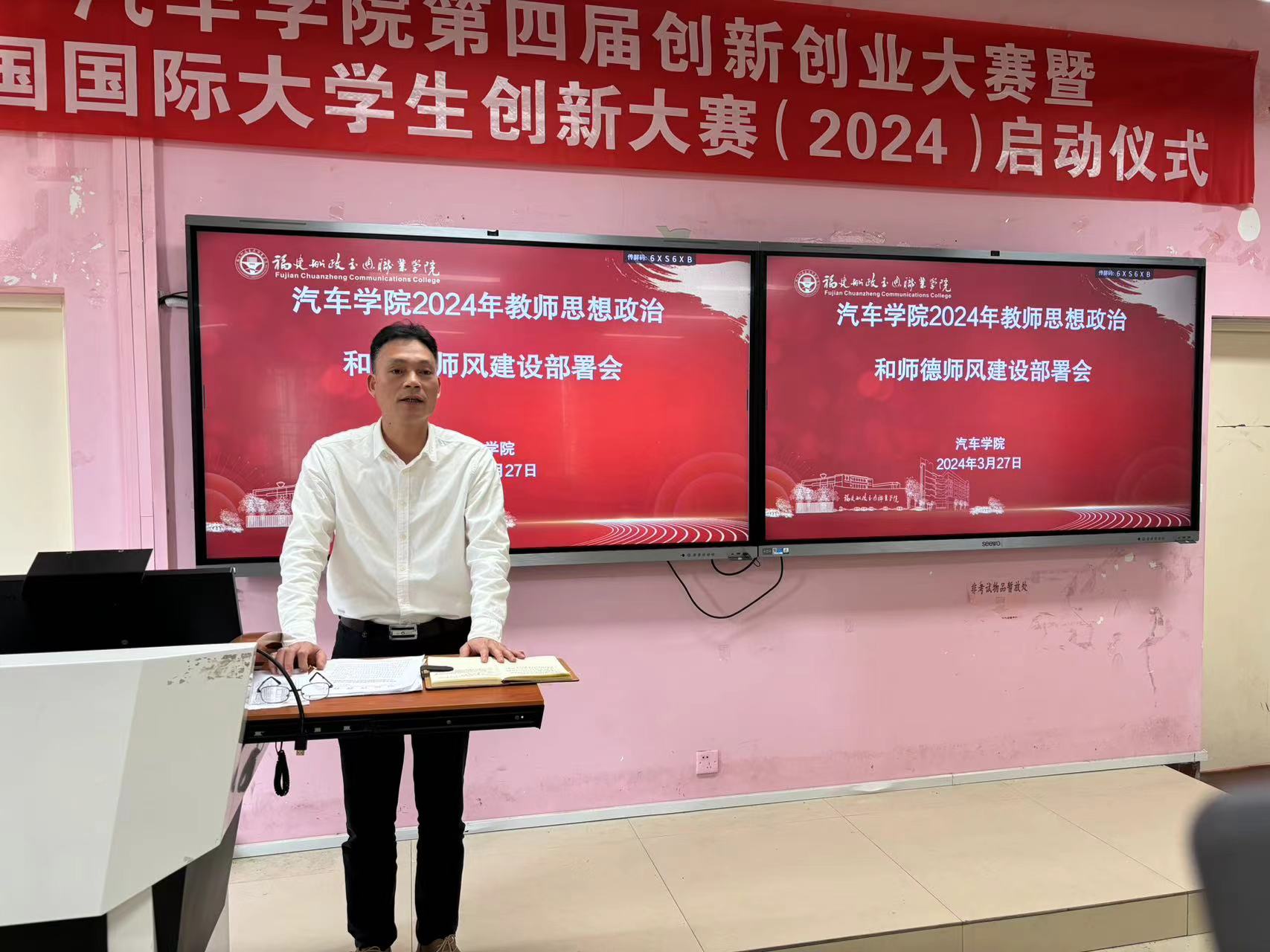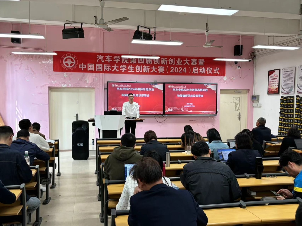 2024年3月27日下午,汽車學(xué)院在2號(hào)樓1-3教室召開(kāi)2024年教師思想政治和師德師風(fēng)建設(shè)工作部署會(huì)。學(xué)院領(lǐng)導(dǎo)班子及全體教職工參會(huì)。會(huì)議由學(xué)院黨總支書(shū)記蔡華錦主持。