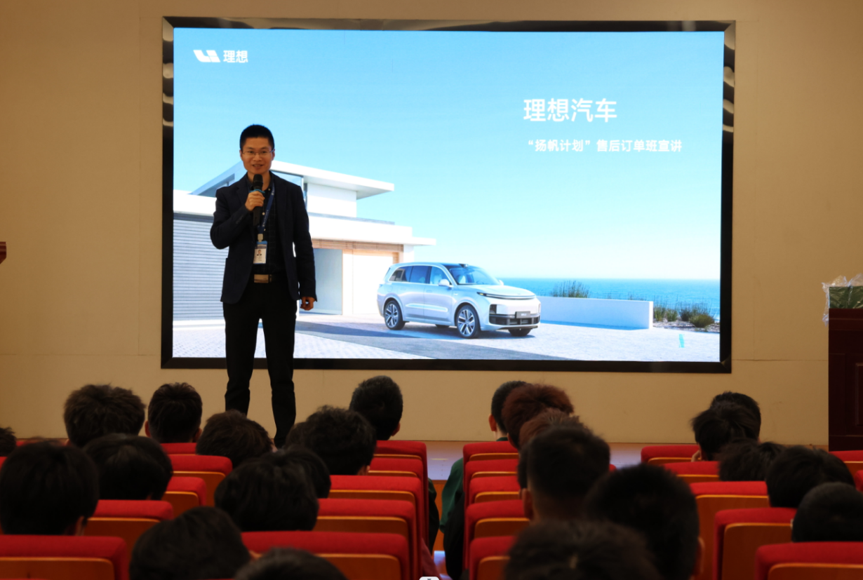 理想汽車售后校企合作經(jīng)理李磊重點(diǎn)闡述了訂單班的獨(dú)特課程體系,包括理論與實(shí)踐的課程要求以及嚴(yán)格的考核標(biāo)準(zhǔn)。此次宣講會(huì)使學(xué)生更加了解了行業(yè)企業(yè)前景與發(fā)展,引起了同學(xué)們的廣泛關(guān)注,同學(xué)們十分期待未來能加入這個(gè)充滿活力和機(jī)遇的企業(yè)。共有100余名學(xué)生積極報(bào)名,通過現(xiàn)場面試,校企雙方最終選拔確定了50名優(yōu)秀的同學(xué)進(jìn)理想汽車“揚(yáng)帆計(jì)劃”2026屆訂單班。