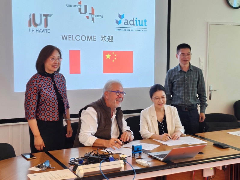 代表團(tuán)與諾曼底勒阿弗爾大學(xué)校長(zhǎng)佩德羅·拉格什·多斯桑托斯Pedro Lages dos Santos及國(guó)際發(fā)展部負(fù)責(zé)人蒂埃里·塔貝利翁Thierry TABELLION等舉行會(huì)談,就雙方師生互訪、教科研合作,特別在港口與海洋產(chǎn)業(yè)人才培養(yǎng)合作方面達(dá)成共識(shí),并簽署校際合作備忘錄。