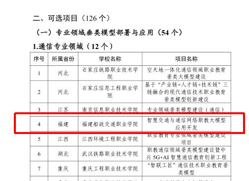近日,教育部職業(yè)教育發(fā)展中心公布了“職業(yè)教育專業(yè)領域垂類模型建設項目(第一批)”入選名單,由信息與智慧交通學院團隊申報的“智慧交通與通信網(wǎng)絡職教大模型應用開發(fā)”項目成功入選,成為通信專業(yè)領域重點建設項目之一。